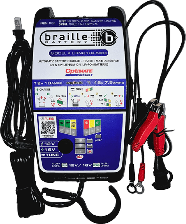El cargador y mantenedor de baterías de litio sellado Braille Optimate TM661 de 12 V, 9,5 A/16 V, 7,5 A es ideal para baterías LiFePO4/LFP de 12 V/13,2 V. Cuenta con un reinicio de energía que reactiva la batería rápidamente y proporciona un soporte estable durante la programación y la resolución de problemas de la ECU. El programa automático de varios pasos carga la batería por completo de forma segura. Incluye un juego de cables y pinzas de batería resistentes a la intemperie.